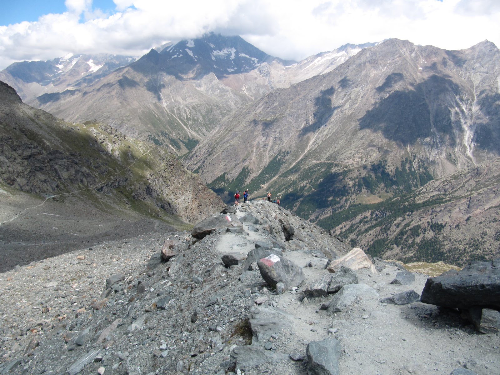 The route winds it's way up with constant views across to the snow capped Weissmies.